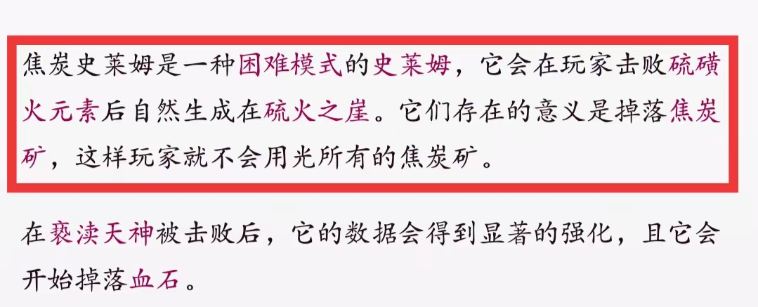 在遊戲《泰拉瑞亞》中,焦炭史萊姆是一種困難模式的史萊姆,會在玩家擊敗硫磺火元素後自然生成在硫火之崖。