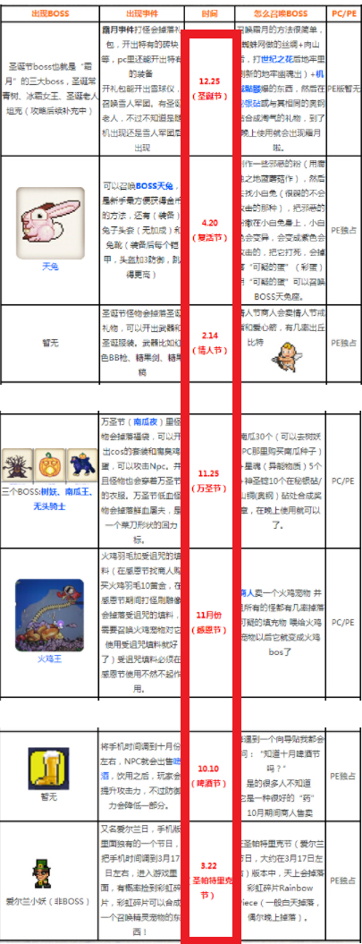 首頁 泰拉瑞亞 問答 泰拉瑞亞1.2節日大全日期是多少? 2022-11-10 泰拉瑞亞1.2節日大全日期為情人節2月14日,帕特里克節3月22日,復活節4月20日,啤酒節10月10日,萬聖節11月25日,感恩節11月,聖誕節12月25日