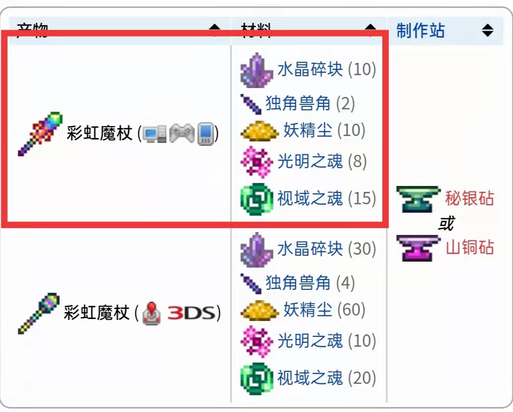 在遊戲《泰拉瑞亞》中,彩虹法杖是指彩虹魔杖,可以通過10塊水晶碎塊、2獨角獸角、10個妖精塵、8塊光明之魂和15個視域之魂在秘銀砧或山銅砧處合成獲得,屬於困難模式的魔法武器,可以發射一個可控的光彈,光彈是白色的且有漸變的彩虹色邊緣。