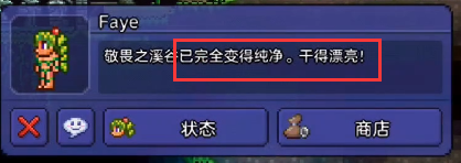 【泰拉瑞亞】地圖100%凈化後,植物專家對話欄中會顯示已完全變得純凈,幹得漂亮,另外凈化後對地圖並沒有什麼影響,也是後期玩法中的一個目標。