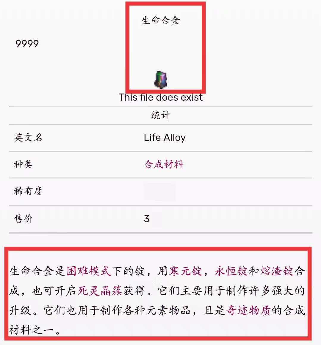 在遊戲《泰拉瑞亞》中,生命合金是困難模式下的錠,玩家可以用寒元錠,永恆錠和熔渣錠合成,也可開啟死靈晶簇獲得。
