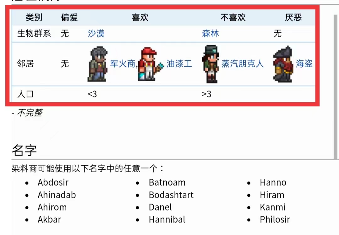 首頁 泰拉瑞亞 問答 泰拉瑞亞染料商人喜歡什麼地形? 2022-11-12 染料商人喜歡沙漠地形,介紹如下:在遊戲《泰拉瑞亞》中,染料商人喜歡喜歡沙漠地形,不喜歡叢林,鄰居喜歡軍火商和油漆工,不喜歡蒸汽朋克,憎恨海盜,玩家需要按照染料商的喜好來安排住房條件。