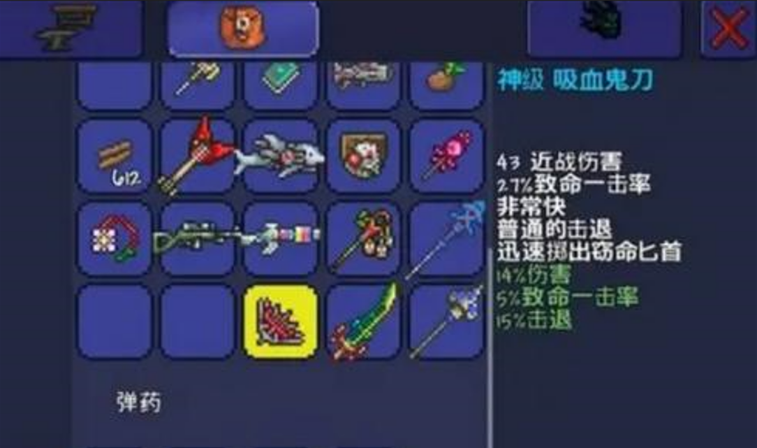 首頁 泰拉瑞亞 問答 泰拉瑞亞吸血鬼飛刀最高附魔等級是多少? 2022-11-12 吸血飛刀的最好附魔效果是超神(有的譯作神級)或使用」無情「以獲得更多的生命回復。吸血鬼飛刀沒有傳奇前綴,只要前綴是藍色的,就是最高等級,每一種前綴都有自己的特性,只是超神的全面一點。