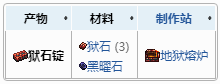 在泰拉瑞亞遊戲中,玩家可在地獄熔爐處,消耗獄石與黑曜石合成獄石錠。獄石錠可用於合成各種裝備,滿足肉前與肉後初期的使用需求。