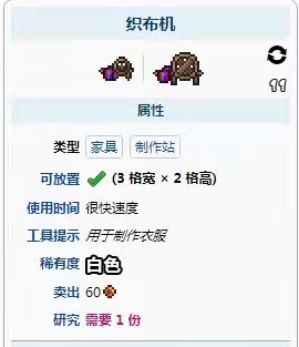 首頁 泰拉瑞亞 問答 泰拉瑞亞縫紉機如何製作? 2022-11-12 縫紉機製作方法介紹:在游戲《泰拉瑞亞》中,縫紉機就是織布機,屬於製作環境的一種,可以用木材12個在鋸木機處製作,而鋸木機需要用10個木材、2個鐵和鎖鏈在工作台處製作。
