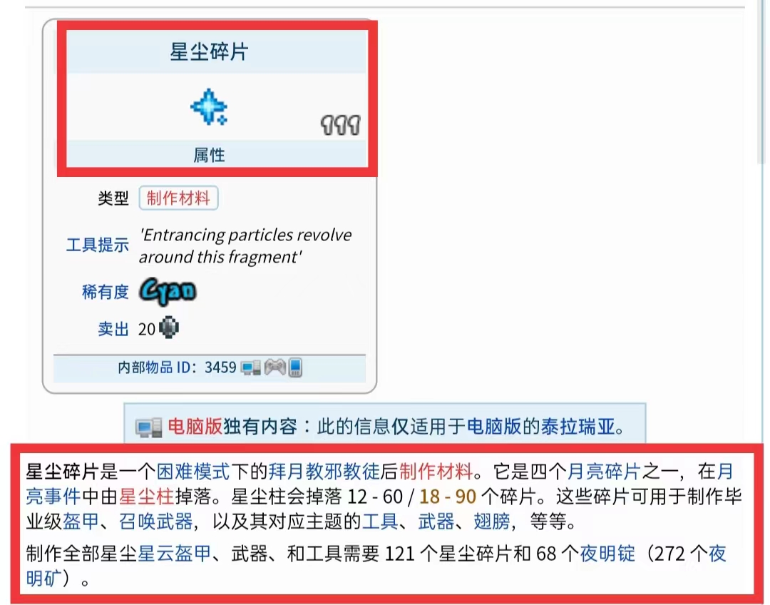 首頁 泰拉瑞亞 問答 泰拉瑞亞星辰碎片怎麼獲得? 2022-11-13 在遊戲《泰拉瑞亞》中,星塵碎片是困難模式下的拜月教邪教徒後製作材料,玩家可以在月亮事件中擊殺星塵柱掉落獲得,普通模式每次掉落12-60個,專家模式則會掉落18-90個碎片。