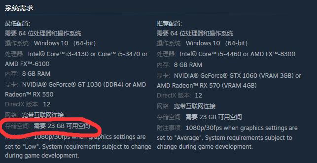 首頁 怪物獵人:崛起 問答 怪物獵人崛起pc版多大? 2022-11-14 大小為23GB。1,首先我們去steam上搜索這款遊戲,點擊進入遊戲界面。2,然後往下滑動找到遊戲配置列表,就可以發現該遊戲大小為23GB了。
