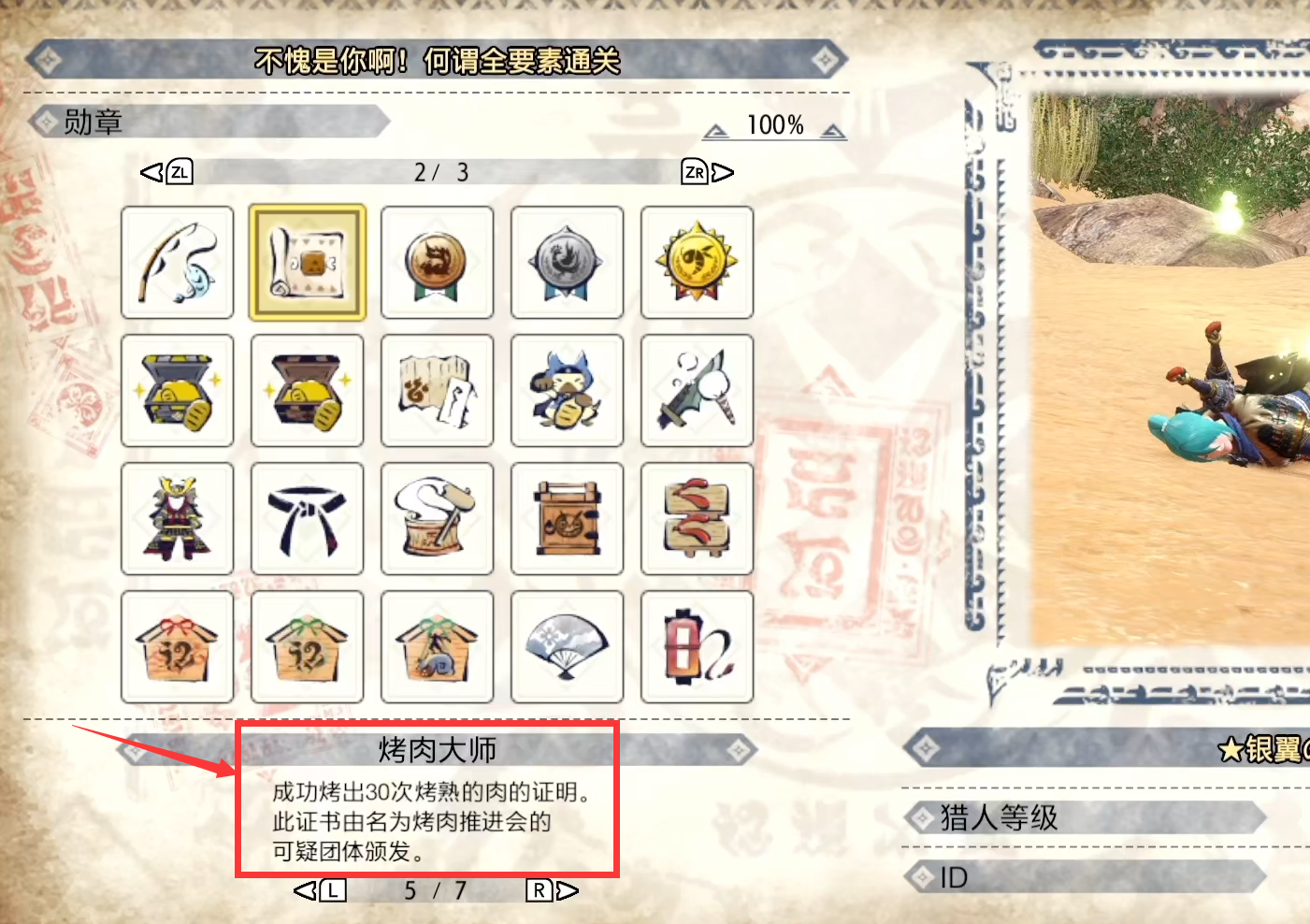 首頁 怪物獵人:崛起 問答 怪物獵人崛起達成烤肉大師的成就需要成功烤肉多少次? 2022-11-14 烤肉大師:成功烤出30次烤熟的肉的證明。此證書由名為烤肉推進會的可疑團體頒發。玩家需成功烤肉30次即可獲得。準備足夠的生肉在訓練場烤就可以。需要注意的是烤全熟肉時機是音樂停下後0.5-1秒鐘。
