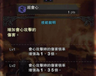 會心率指的就是會心一擊的概率,也就是我們常說的武器暴擊率,就是在觸發時造成的傷害要比普通攻擊高。會心一擊的攻擊力是普通攻擊的1.25倍,暴擊則是2倍。可以通過疊加看破技能和弱點看破來增加自己武器的會心率。還有負會心率,負會心率造成0.75倍的傷害。