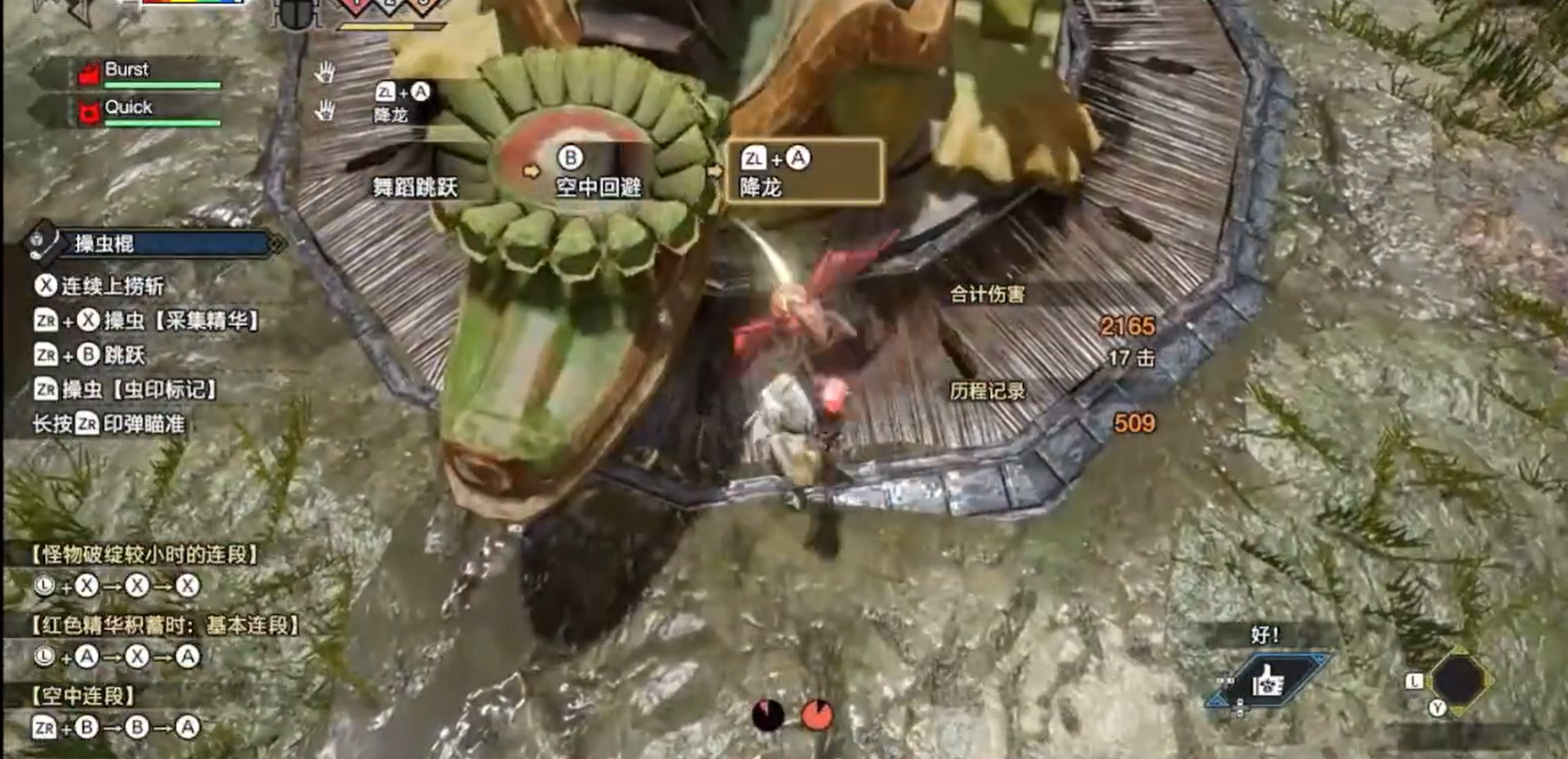 1.怪物獵人:崛起蟲棍降龍是技能操蟲棍的連續技能。