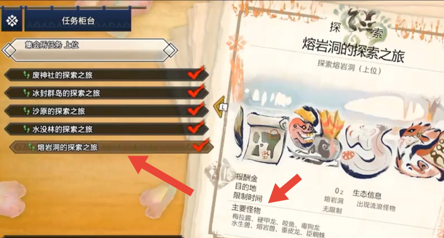首頁 怪物獵人:崛起 問答 怪獵崛起熔岩獸在哪裡? 2022-11-14 1、玩家接受集會所上位的熔岩洞探索之旅的任務。2、玩家進入地圖後,打開詳細地圖,選擇下層找到13號地區。3、玩家來到13號地區,能夠找到熔岩獸。