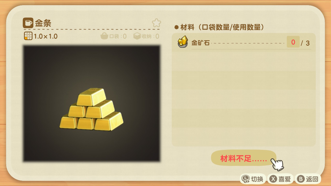 首頁 集合啦!動物森友會 問答 集合啦!動物森友會金礦石有什麼用? 2022-11-17 1、可以使用金礦石,在工具台製作含黃金的手冊,例如金條、黃金餐具、黃金花瓶、黃金棒等。2、可以去商店向豆狸或粒狸,售賣金礦石,賺取鈴錢。3、可以送給小動物作為禮物,提高和小動物之間的好感度。以上就是動物森友會金礦石的用途。