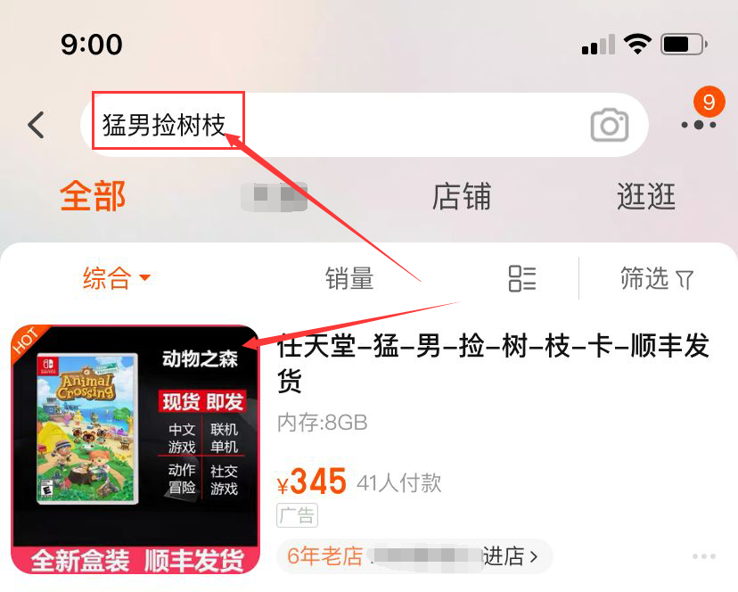 首頁 集合啦!動物森友會 問答 動森switch遊戲卡為啥買不到? 2022-11-17 因為動物森友被要求禁止在國內售賣,所以玩家在網購平台上直接搜索該遊戲是搜不到的,但是玩家可以搜索該遊戲的暗號來找到售賣店鋪,如:猛男撿樹枝,如下圖所示: