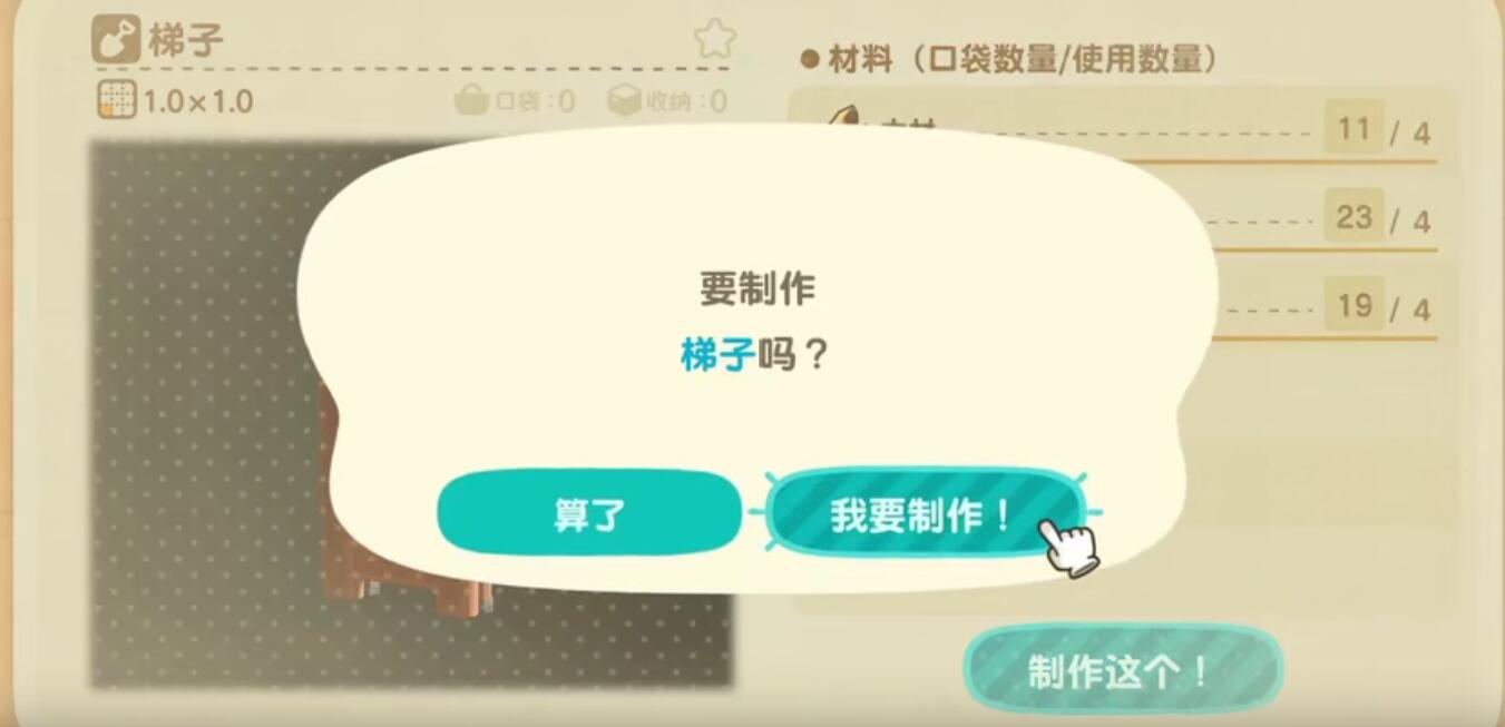 首頁 集合啦!動物森友會 問答 動森梯子怎麼獲得? 2022-11-19 1.建造完房屋後狸克會打電話拜託你採花,然後送給你梯子的diy2.製作梯子需要木材,硬木材,軟木材各4個,我們只需要集齊物品直接製作就可以了