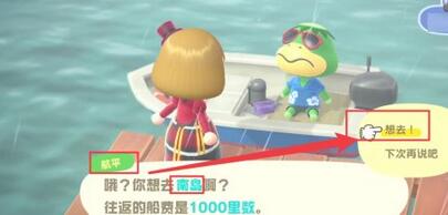 首頁 集合啦!動物森友會 問答 動森南島是什麼意思? 2022-11-19 動物森友會南島是一個可以掘甘蔗和鮮花種子的島嶼。玩法:1、在港口與航平對話點擊【想去】前往南島。2、如圖所示隨後點擊裝備【戶外鏟子】。3、如圖所示最後使用戶外鏟子即可在南島挖掘甘蔗和鮮花種子了。