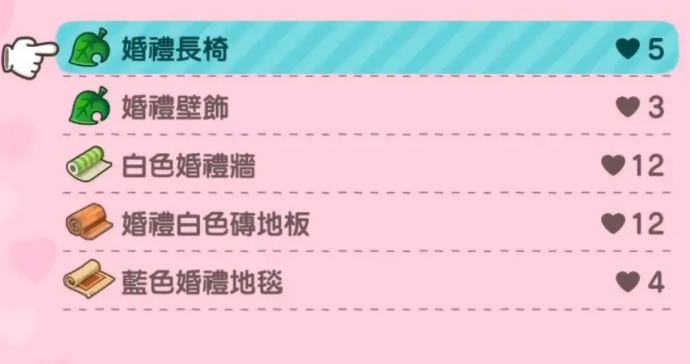 首頁 集合啦!動物森友會 問答 集合啦!動物森友會巴獵島婚禮傢具在哪? 2022-11-19 婚禮傢具需要用愛的結晶和NPC健兆對話兌換,部分特殊的傢具需要從npc處取得配方,通過diy製作獲得,比如婚禮柵欄、婚禮棒等。