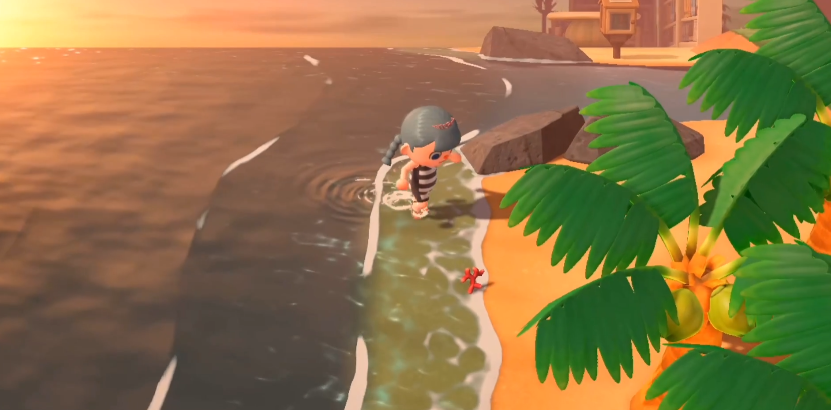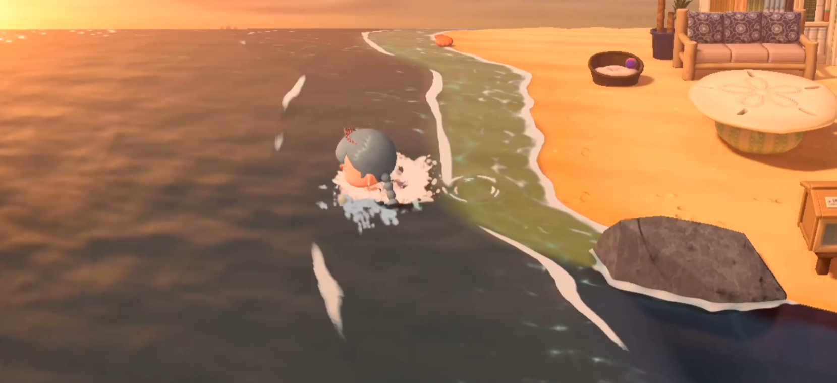 4、需要上岸的話,我們直接游到沙灘上就可以上岸啦。以上就是動物森友會潛水的方法。