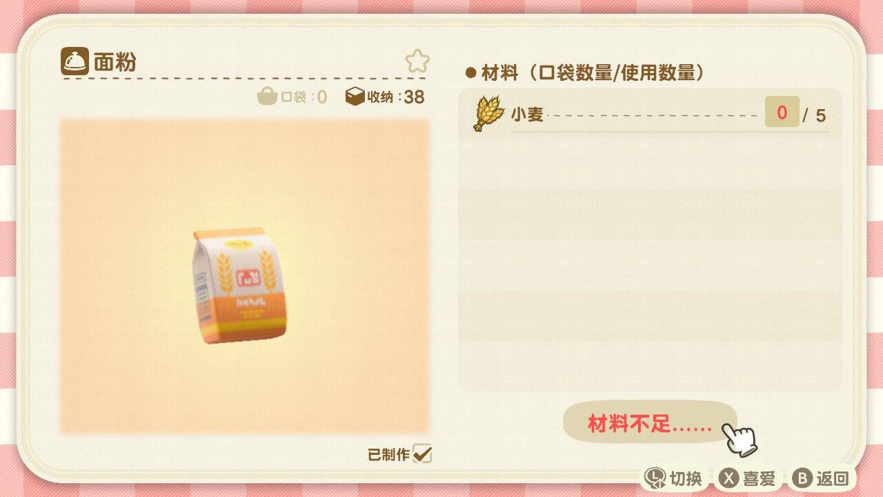 首頁 集合啦!動物森友會 問答 動物森友會麵粉怎麼獲得? 2022-11-21 動物森友會是一款發售於2020年3月20日的游戲,在2021年11月5日的動物森友會2.0更新後,玩家可以使用各種材料來製作料理,其中玩家可以在廚房中使用五個小麥來製作麵粉。