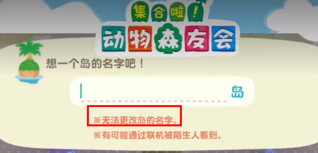 如下圖所示,島的名字不能更改。在初次登入島時,就有提示說明島的名字確定後就無法更改。唯一更改島的名字的方法是通過刪檔重新來過。