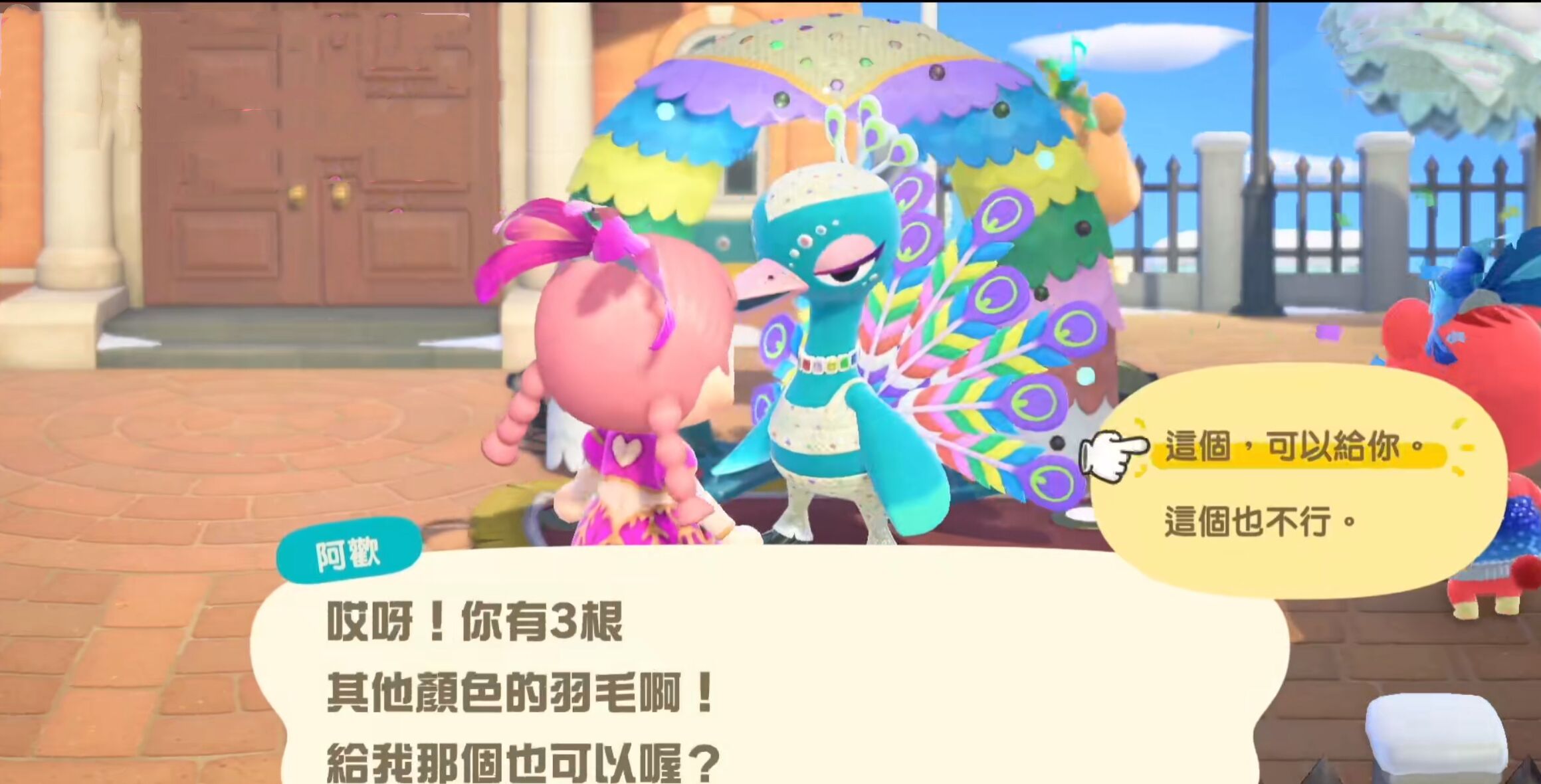 3.玩家送給阿歡什麼顏色的羽毛,阿歡就會隨機贈送該顏色的狂歡節傢具;