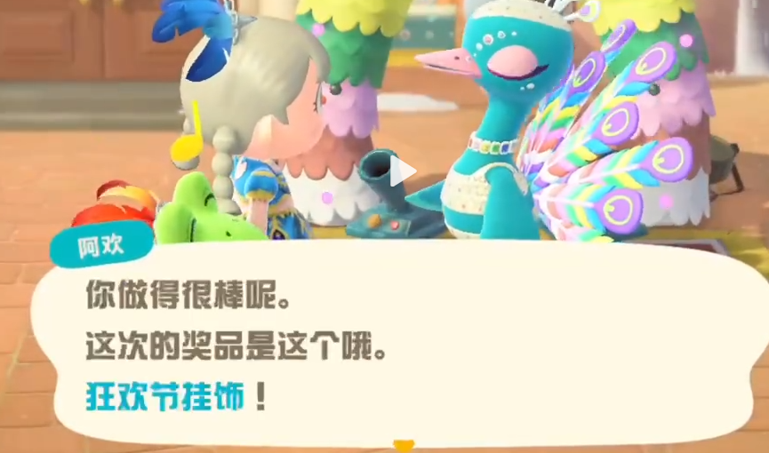 遊戲中玩家需要收集各種顏色的羽毛交給NPC阿歡後她會為玩家獻上對應羽毛的狂歡節舞蹈並贈送給玩家相應的狂歡節裝扮。