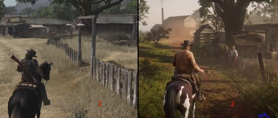 大鏢客1和2是同一個世界觀下的同一個故事,但2是1的前傳,大鏢客1的時間是1911年,玩家扮演的主角是約翰馬斯頓,在約翰馬斯頓被亂槍打死後玩家將繼續扮演他的兒子傑克馬斯頓。而大鏢客2中時間則為1899年,玩家扮演了亞瑟摩根這一角色。