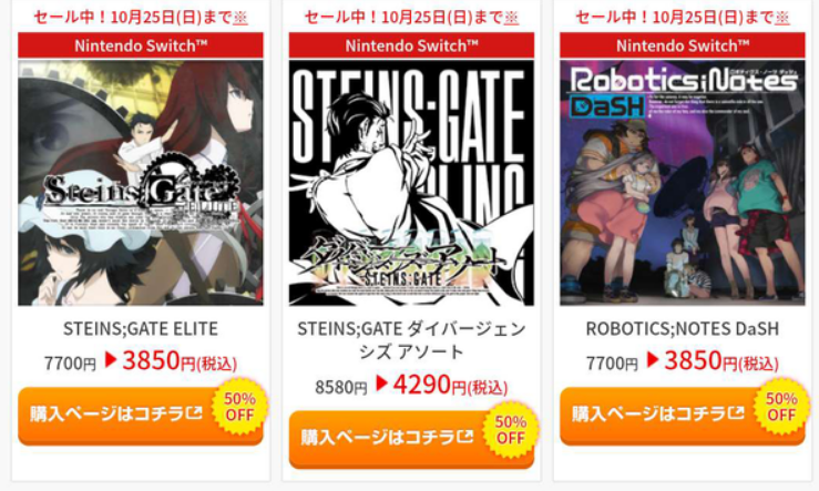 另外,Nintendo Switch商城也於早期開啟了包含科學adv系列,秋之回憶系列等游戲的半價活動,有興趣的玩家可前往商城購買。
