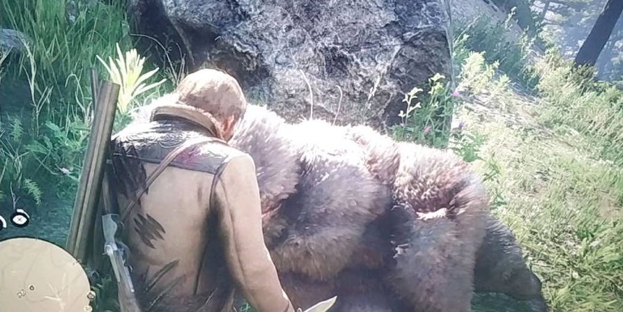 荒野大鏢客2遊戲中地圖有一個狩獵大師可以去找他把熊皮賣給他,也可以賣給野外的捕獸人,獲取60刀,然後在找他花45刀做個帽子。