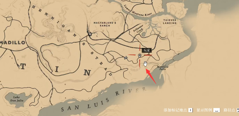 首頁 荒野大鏢客2 問答 荒野大鏢客2野牛皮在哪? 2022-12-01 1、荒野大鏢客2中可以通過狩獵野牛來獲取野牛皮,狩獵野牛的具體位置如地圖中箭頭所示。2、來到這裡之後先找到野牛的糞便,通過糞便來追蹤野牛。3、最後找到野牛將其殺死剝皮就可以獲得野牛皮了。