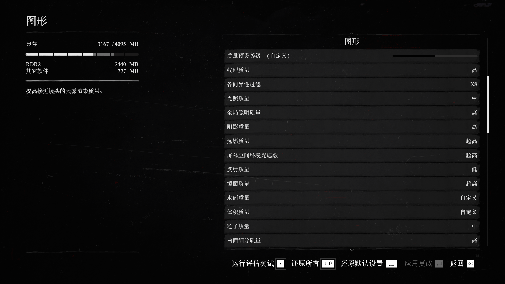 首頁 荒野大鏢客2 問答 荒野大鏢客2卡頓怎麼設置流暢? 2022-12-01 荒野大鏢客2卡頓可以通過調整部分設置來使電腦流暢。1.首先,玩家的視頻設置可以按如圖所示去設置。2.其次,圖形設置可以按如圖所示設置。3.最後,高級圖形設置可以按如圖所示設置。