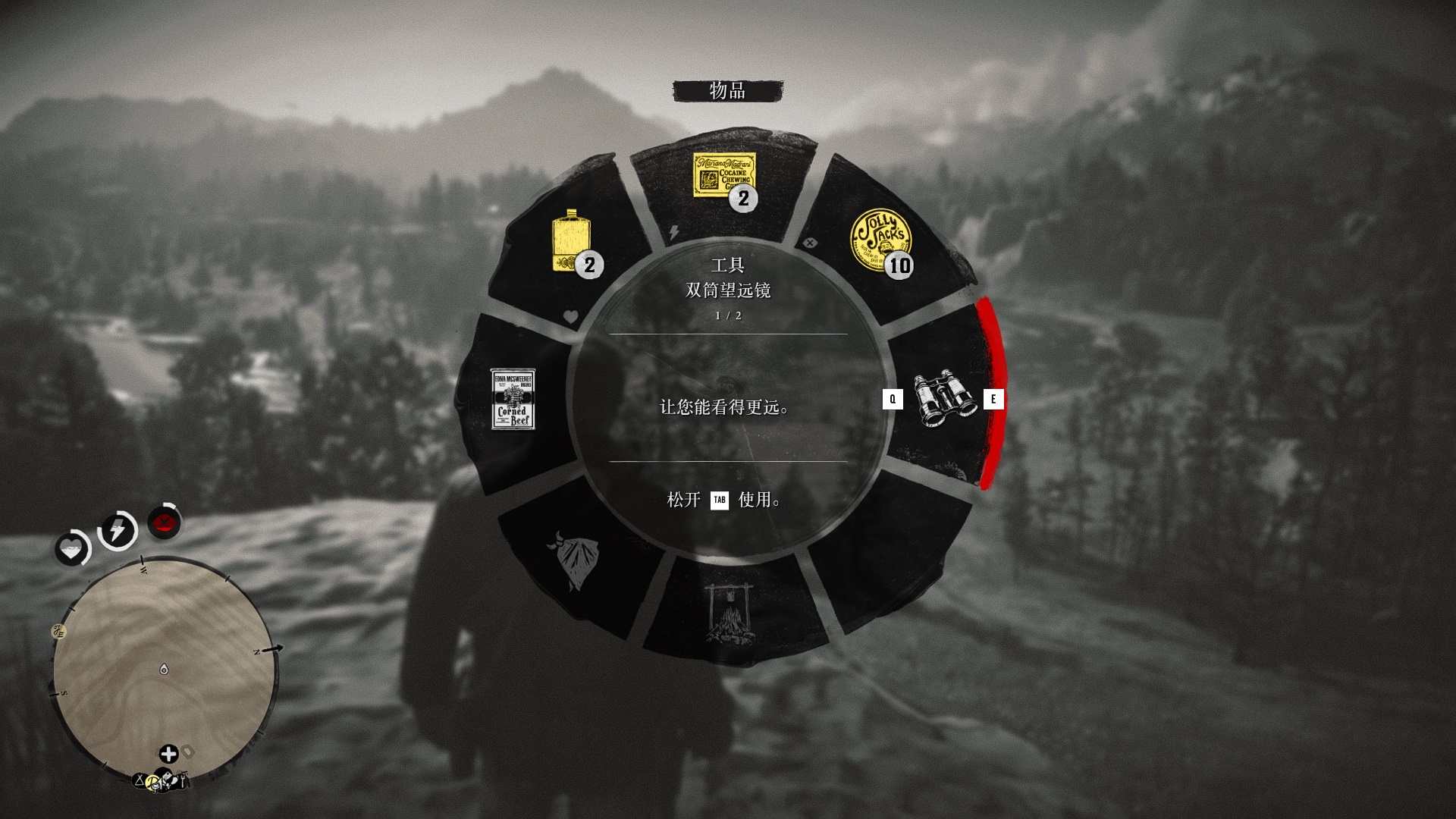 首頁 荒野大鏢客2 問答 荒野大鏢客2望遠鏡怎麼打開? 2022-12-02 1.在游戲荒野大鏢客2中,按下tab鍵,打開物品欄;2.然後將滑鼠指針放置到望遠鏡上,松開tab鍵;3.這時候望遠鏡就拿在手裡了,按下滑鼠左鍵就能打開使用了。