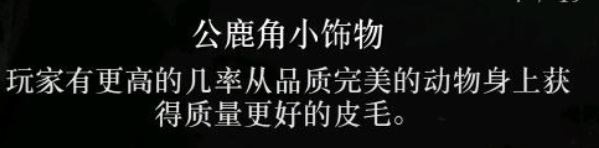 首頁 荒野大鏢客2 問答 荒野大鏢客2公鹿角小飾物怎麼用? 2022-12-03 荒野大鏢客2游戲中公鹿角小飾物是一個道具,作用是材料品質得到提升。玩家有更高的從品質完美的動物上獲得質量更好的皮毛,公鹿角飾品可以在黑市商人處進行製造,而材料公鹿角需要通過捕獵傳說公鹿獲得。