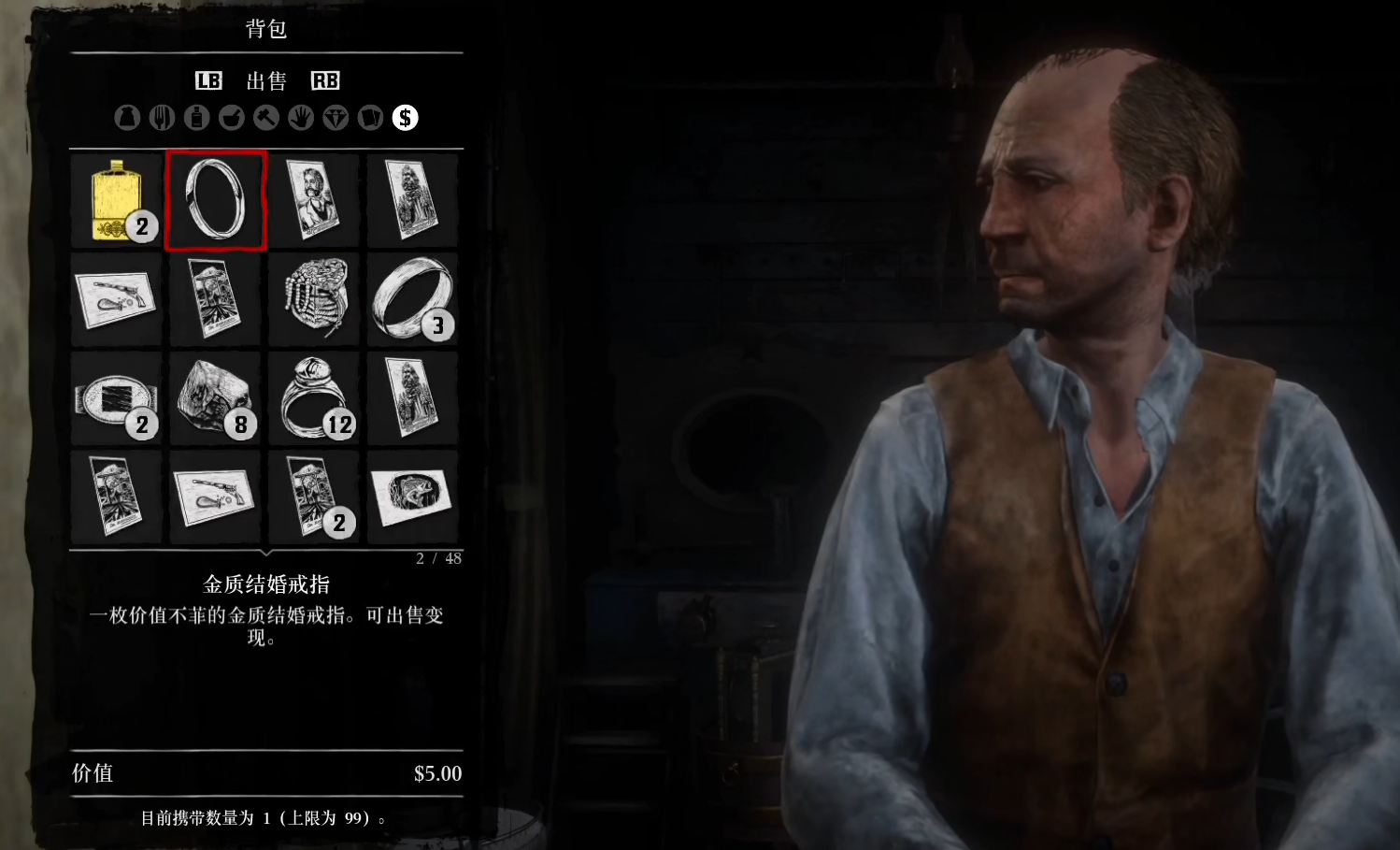 首頁 荒野大鏢客2 問答 荒野大鏢客2怎麼賣金戒指? 2022-12-04 1、首先打開游戲,在地圖上找到黑市。2、在黑市中,找到商人,選擇出售選項。3、打開背包,選擇售賣的物品。4、然後選擇全部售出選項後,就可以將金戒指進行售賣。
