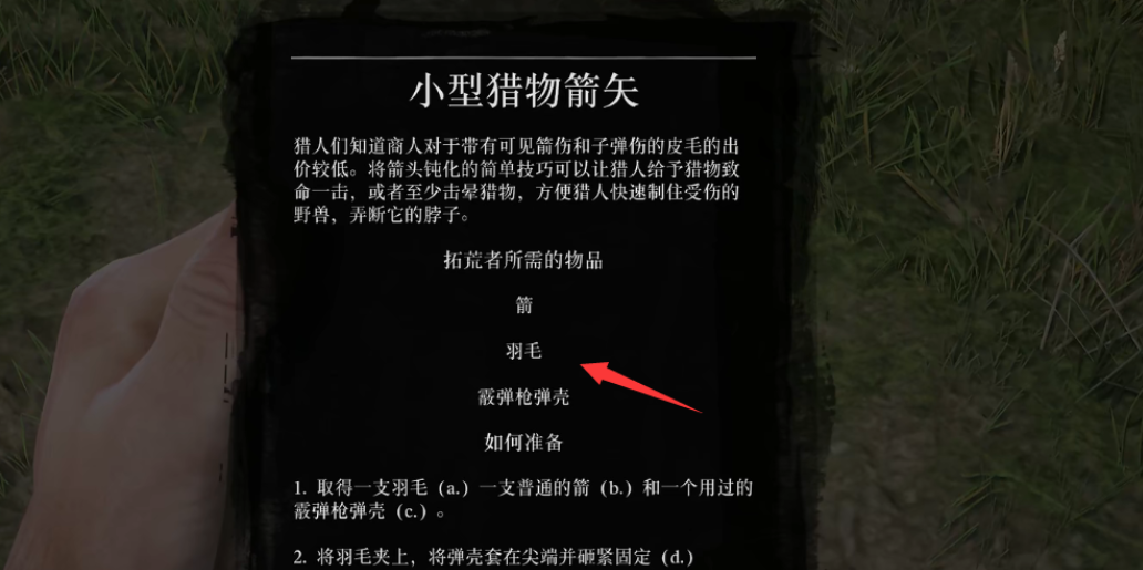 首頁 荒野大鏢客2 問答 荒野大鏢客2松鼠皮三星用什麼武器? 2022-12-05 1、在荒野大鏢客2中要想得到完美的松鼠皮最好用小型獵物箭矢,準備好如圖所示的材料。2、來到三星松鼠經常刷新的地點,拿望遠鏡找到三星松鼠的位置。3、用小型獵物箭矢將三星松鼠殺死之後就可以得到完美的松鼠皮。