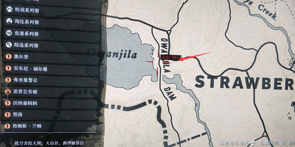 在荒野大鏢客2中歐萬吉拉大壩的具體位置在地圖上的箭頭所指處,在大山谷,西伊麗莎白。我們需要完成每日任務到達這里一次即可。
