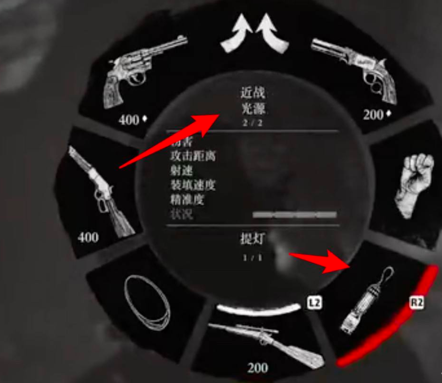 首頁 荒野大鏢客2 問答 荒野大鏢客2燈怎麼拿出來? 2022-12-06 荒野大鏢客2燈拿出來的方法如下;1.玩家進入游戲之後按R1切換近戰武器,打開武器輪盤,按R1切換到近戰武器。2,按R2切換到光源,在近戰武器下按R2切換到光源。這樣就可以把燈拿出來了.