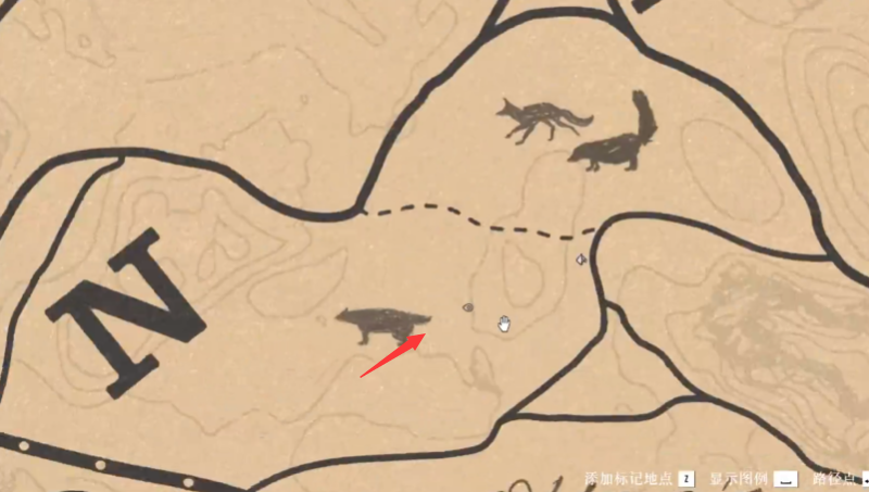 1、荒野大鏢客中的黑加侖具體位置如地圖中的箭頭所示,需要我們在這附近搜尋一下。