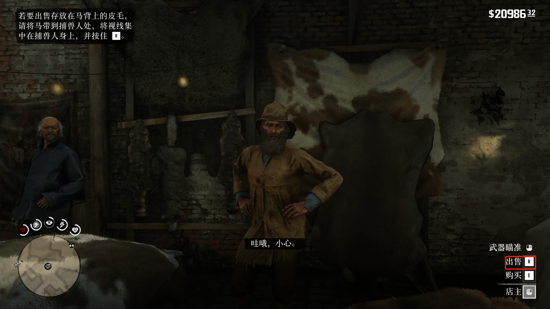 首頁 荒野大鏢客2 問答 大表哥2傳說公盤羊怎麼處理? 2022-12-07 荒野大鏢客2傳說公盤羊可以剝皮後出售給捕獸人。1.首先,玩家需要進入游戲後,找到如圖上任意一個捕獸人位置。2.然後選擇出售。3.最後出售傳說公盤羊皮即可。