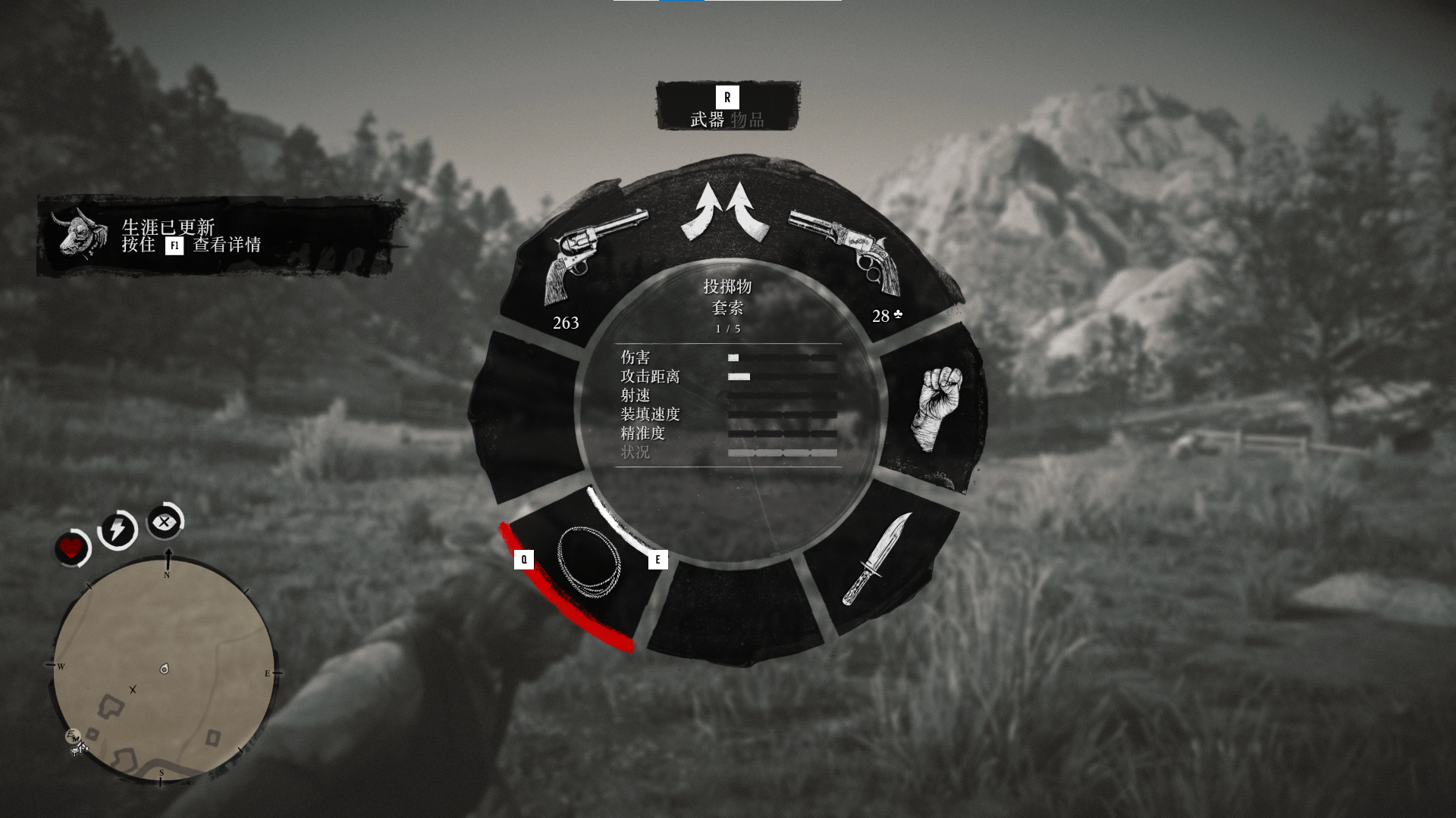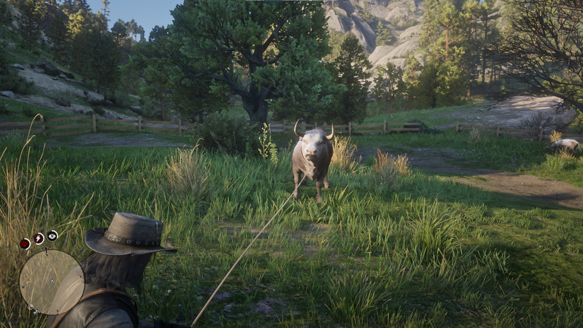 首頁 荒野大鏢客2 問答 荒野大鏢客2怎麼套住公牛? 2022-12-07 1.首先,玩家需要進入荒野大鏢客2游戲後,抵達如圖所示農場。2.接著找到公牛。3.然後按tab鍵切出繩索。4.最後對準公牛,扔出繩索即可套住。