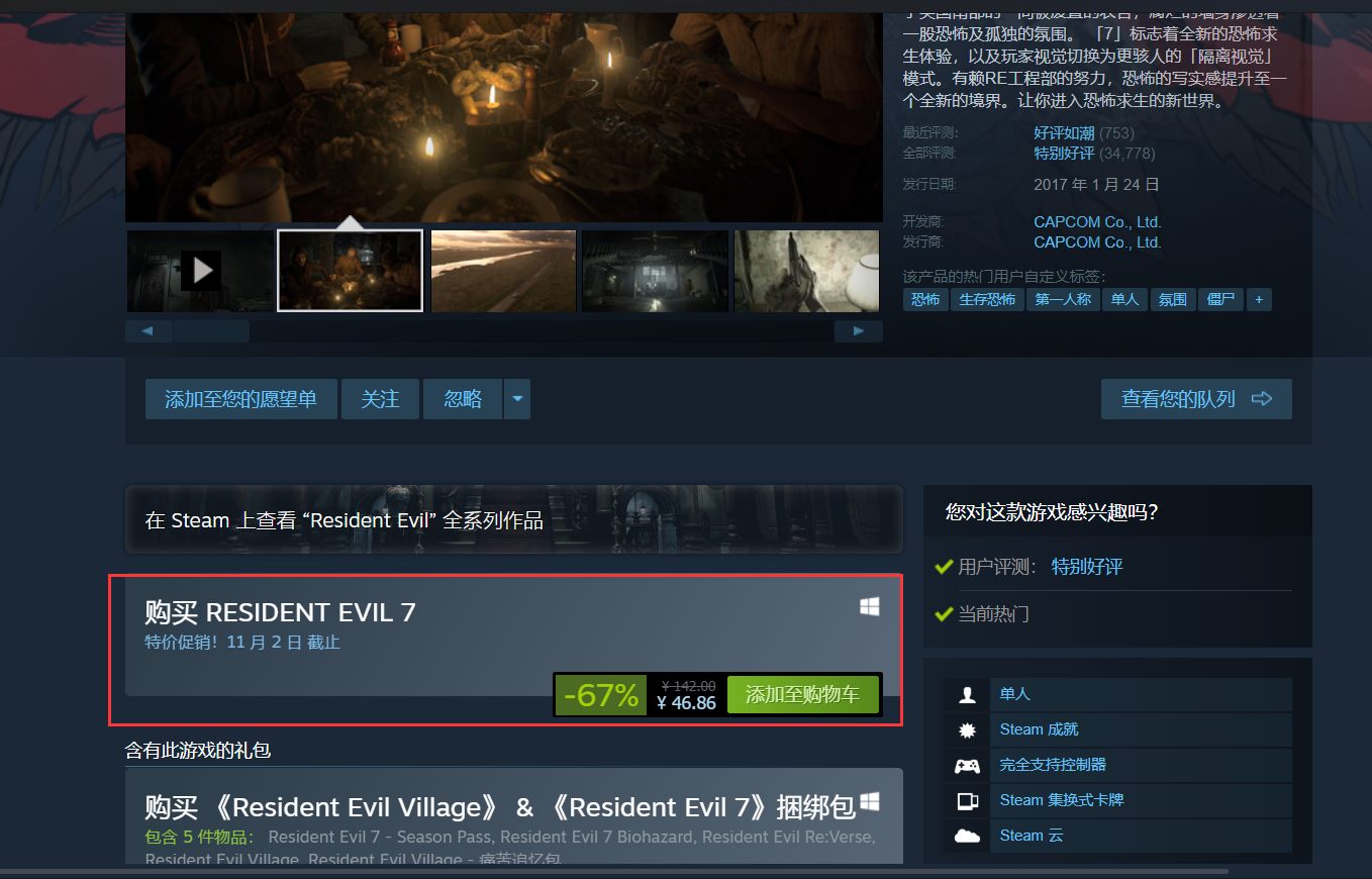 首頁 生化危機7 問答 生化危機7在哪個游戲平台上買? 2022-12-10 1.生化危機7在steam、PS4和Xbox one等平台都有上架2.以steam為例,進入steam平台後,搜索Resident Evil 7 biohazard進入購買3.購買後進行下載安裝即可