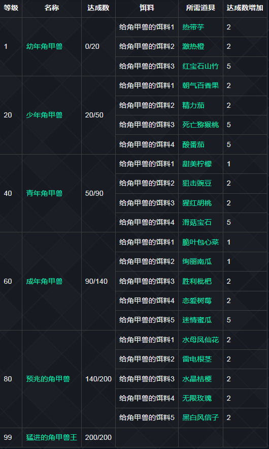 首頁 異度之刃2 問答 異度之刃2餵養角甲獸怎麼刷? 2022-12-11 1、下圖即餵養角甲獸不同等級所需要的不同道具,玩家可以根據下圖去獲取對應的道具來餵養。2、以猩紅胡桃為例,可以在莫爾斯之地採集獲得,採集需要農學2級。