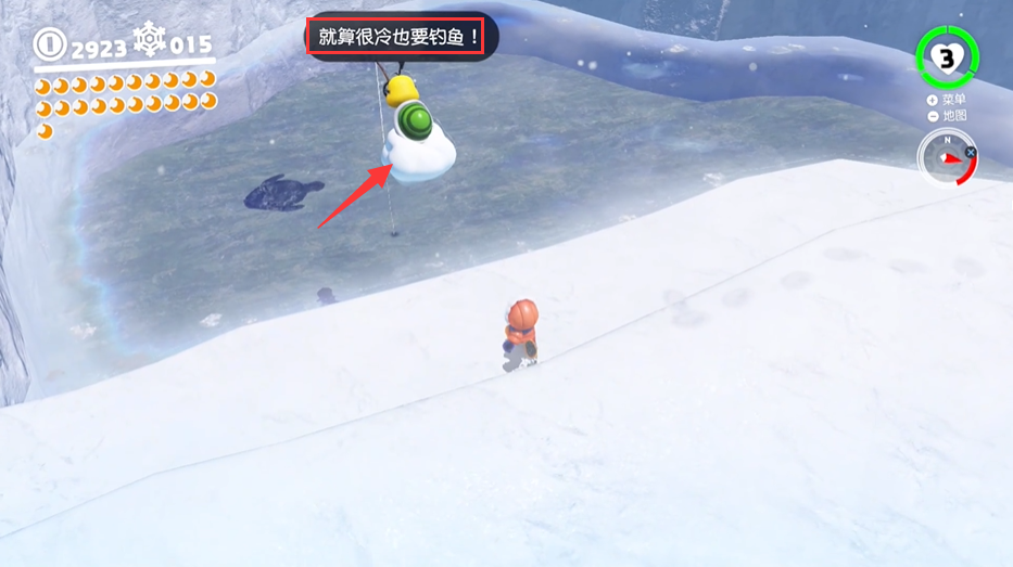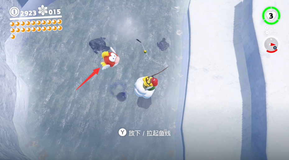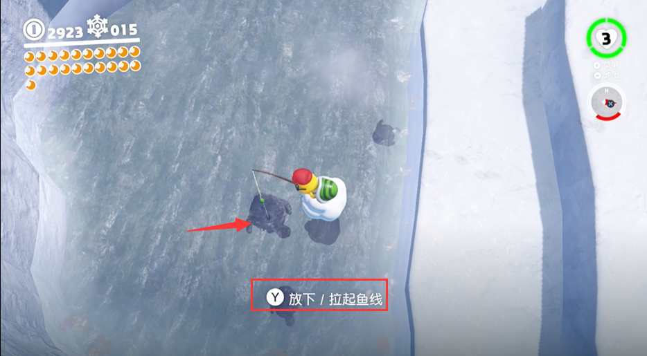 首頁 超級馬里奧:奧德賽 問答 超級馬里奧:奧德賽怎麼釣魚? 2022-12-15 1.超級馬里奧:奧德賽釣魚如圖所示,來到圖中的地方進行釣魚2.酷巴附身小烏龜,等待魚游近,按【Y】鍵拉起魚線,有的時候看不到魚,可以通過手柄的震動判斷3.如圖所示成功釣出一條魚