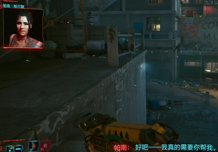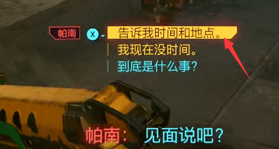 首頁 賽博朋克2077 問答 賽博朋克2077帕南支線怎麼開啟? 2022-12-17 1、玩家需要前往來生酒吧,開啟並完成主線「死城」。2、過一段時間後,玩家會收到來自帕南的電話,請求玩家的幫助。3、在與帕南的對話中選擇「告訴我時間和地點」,即可以開啟帕南支線