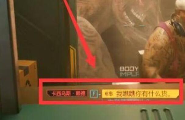 首頁 賽博朋克2077 問答 賽博朋克卡西烏斯免費獎勵在哪? 2022-12-18 賽博朋克卡西烏斯免費獎勵的領取位置:1、打開遊戲,首先接取卡西烏斯免費獎勵的任務。2、走到名字叫卡西烏斯的義體商人面前,按下f鍵打開商店。3、彈出界面,點擊手掌部位。4、選擇第二個物品即可領取。