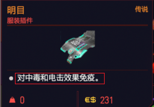 首頁 賽博朋克2077 問答 2077明目有什麼用? 2022-12-19 《賽博朋克2077》中明目插件可以對中毒和電擊效果免疫,聲望到達50級後解鎖。商店購買推薦:小唐人街、歌舞伎區、科多納多農場、公司廣場。