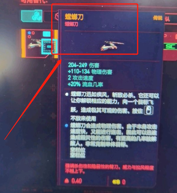 首頁 賽博朋克2077 問答 2077傳說螳螂刀在哪買? 2022-12-19 賽博朋克2077中的傳說螳螂刀購買的具體的位置如下所示:1.玩家進入游戲後,玩家來到海伍德找到義體醫生2.最後玩家購買傳說螳螂刀了