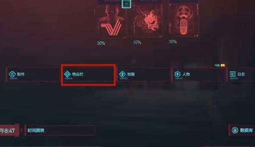 1、手柄按菜單鍵,PC端按「o」鍵,就能打開下圖所示的賽博朋克菜單界面。