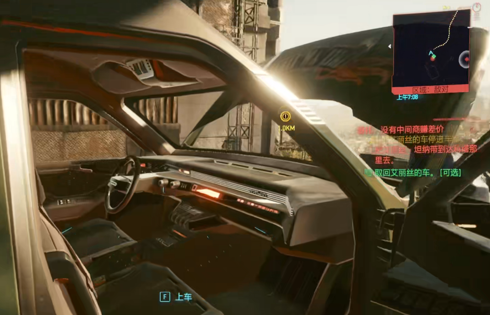首頁 賽博朋克2077 問答 賽博朋克2077艾麗絲的車在哪? 2022-12-20 1.玩家在沒有中間商賺差價任務中,可以根據任務提示找到艾麗絲的車,其具體位置如下圖所示。2.來到車前按F上車即可完成任務。