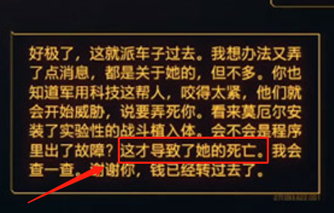 首頁 賽博朋克2077 問答 賽博朋克2077賽博精神病活捉和殺死有什麼區別? 2022-12-20 區別主要就是劇情,如果你沒有打死賽博精神病的話,那麼後續可以看到一個文字小劇情,一般都是為什麼他會瘋了的原因,但是如果你直接打死的話,那麼就沒有救了。比如目擊賽博精神病 莫厄爾中尉,這個劇情因為玩家是否讓其存活的劇情差別。