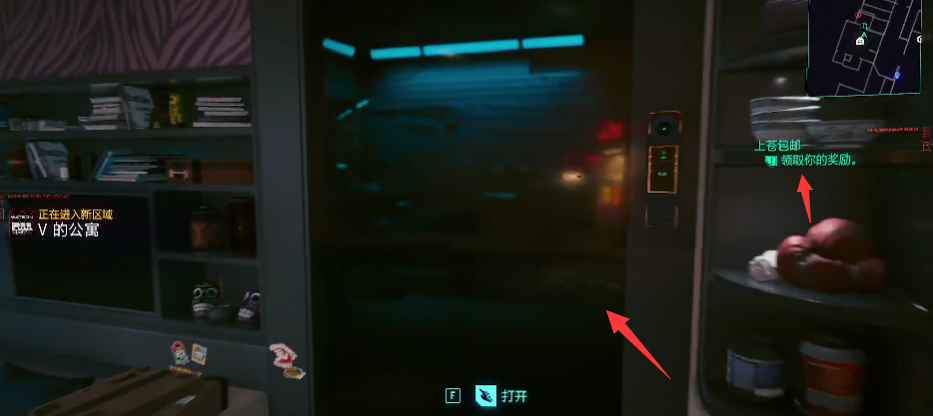 首頁 賽博朋克2077 問答 2077上蒼包郵怎麼領取獎勵? 2022-12-20 上蒼包郵領取獎勵的具體步驟如下;1、首先進入V的公寓,打開這個門。2、然後到桌子旁邊按F打開儲藏處。3、打開之後選擇你想要的獎勵就行了。